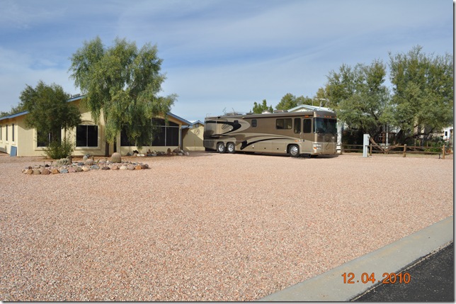 We pulled into North Ranch shortly after lunch time and stopped right in front of our good friends Paul and Nancy’s house and interrupted their lunch. After long hugs, we unhooked our Toad and proceeded on down to our house. WOW!!! It was so easy to put the Motorhome in it's spot! Unbelievable and it fits nicely, don’t you think?